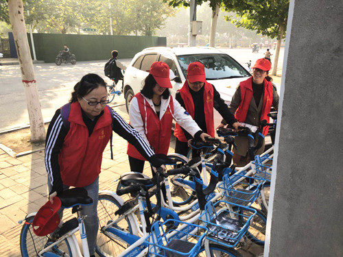 為扎實(shí)推進(jìn)“五城聯(lián)創(chuàng)”工作深入開展,調(diào)動廣大市民積極參與“五城聯(lián)創(chuàng)”工作的積極性、主動性,我市在中心城區(qū)開展了為期一個(gè)月的“灑掃庭院迎賓客,文明創(chuàng)建我助力”活動。圖①為中國人民銀行職工在清理小廣告。圖②為中國人壽職工在清掃路面。圖③為市公路局職工在清理綠化帶。圖④為周口師范學(xué)院師生在整理共享單車。