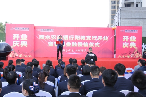 10月24日,商水農(nóng)商銀行舉行陽(yáng)城支行開(kāi)業(yè)暨 普惠金融授信儀式。該行行長(zhǎng)李楠及中層以上人員參加儀式??h金融辦負(fù)責(zé)人姜建中 、縣人民銀行行長(zhǎng)徐明、銀監(jiān)辦主任張明瑭,部分客戶代表應(yīng)邀出席儀式,儀式由姜建中主持。