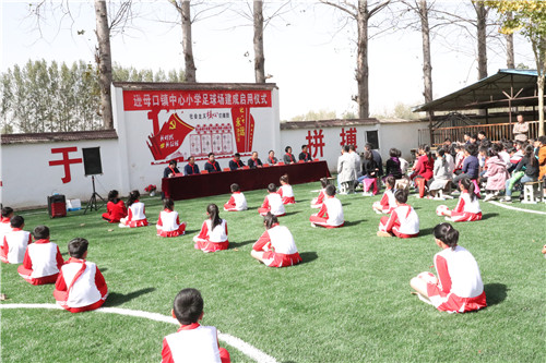 啟用儀式上,該縣遜母口鎮(zhèn)中心小學(xué)的學(xué)生們愉快地表演了足球操,少先隊(duì)員分別向領(lǐng)導(dǎo)和嘉賓佩戴紅領(lǐng)巾表達(dá)感恩之情。河南省第十三屆人大代表張華女士代表足球場捐建單位講話。張華說,當(dāng)前,隨著脫貧攻堅(jiān)深入開展,家鄉(xiāng)的各項(xiàng)事業(yè)蓬勃發(fā)展。作為遜母口鎮(zhèn)的一員,看到家鄉(xiāng)這些年翻天覆地的變化,感到特別喜悅。作為一名省人大代表,為助力家鄉(xiāng)脫貧攻堅(jiān),同時落實(shí)“脫貧攻堅(jiān)人大代表在行動”號召,便決定投資50萬元為遜母口鎮(zhèn)中心小學(xué)建立一個高標(biāo)準(zhǔn)的踢足場,滿足孩子們踢足球的愿望。