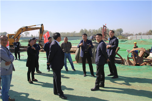 在大廣高速周口港區(qū)互通立交建設項目施工現(xiàn)場,孫紅偉一行查看了施工方采取的環(huán)保措施,向施工方負責人了解施工進度,并針對項目推進過程中的環(huán)保工作,提出了具體要求。