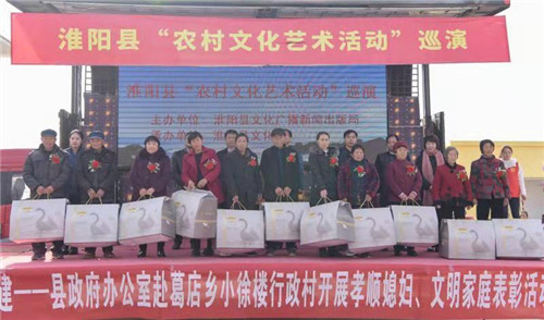 當(dāng)天,不僅表彰了11名孝順媳婦、11個(gè)文明家庭,贈(zèng)送了價(jià)值3萬余元的辦公用品、慰問品和各類圖書1000余冊(cè),還開展了義診活動(dòng)。同時(shí),由縣政府辦公室文藝志愿者、社會(huì)義工等共同為廣大群眾送上了一場(chǎng)文藝盛宴。