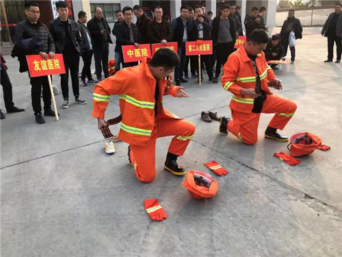 來(lái)自消防安全重點(diǎn)單位的8個(gè)代表隊(duì)作為第一支隊(duì)伍進(jìn)行體能、技能競(jìng)賽。體能技能競(jìng)賽設(shè)有兩盤水帶連接、50米負(fù)重跑、原地著戰(zhàn)斗服和俯臥撐4個(gè)項(xiàng)目,參賽隊(duì)員斗志昂揚(yáng)、技能精湛,充分的展示了微型消防站建設(shè)取得的成績(jī)和微型站隊(duì)員敢打必勝的良好精神風(fēng)貌,為首屆行業(yè)系統(tǒng)微型消防站業(yè)務(wù)技能比武大賽開了一個(gè)好頭。