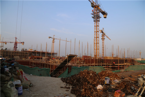 當(dāng)日下午,記者在現(xiàn)場看到,施工人員正在緊張施工。樓上,工人們在嫻熟捆扎鋼筋;地面,叉車、挖掘機(jī)、灑水車等機(jī)械交叉進(jìn)行作業(yè),施工現(xiàn)場一派熱火朝天的景象?!?1棟樓已有9棟出正負(fù)零,最高一棟已施工至第十層,其余幾棟樓房預(yù)計在12月底全部出正負(fù)零?!碧┖图覉@項目安質(zhì)部經(jīng)理李加林介紹,該項目總建筑面積32.7萬平方米,共建安置房2108套。其中9棟樓正在進(jìn)行主體結(jié)構(gòu)施工,其余幾棟樓正在進(jìn)行梁板鋼筋綁扎和頂板支模,預(yù)計2019年4月底實現(xiàn)所有樓層全部封頂。