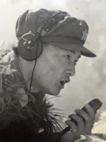 這時(shí)候,反撲的敵人越來越近了,蔣慶泉向指揮部的兩名話務(wù)戰(zhàn)士谷德泰和陸洪坤報(bào)告了這一情況??粗绯彼惚平臄橙耍Y慶泉拼盡全力,沖著步話機(jī)嘶吼:“別廢話!向我所在的碉堡頂開炮!”。在陣地暗堡中,幸存的戰(zhàn)士緊緊圍在蔣慶泉身邊,以保護(hù)他向我炮兵指揮部通報(bào)目標(biāo)的位置。