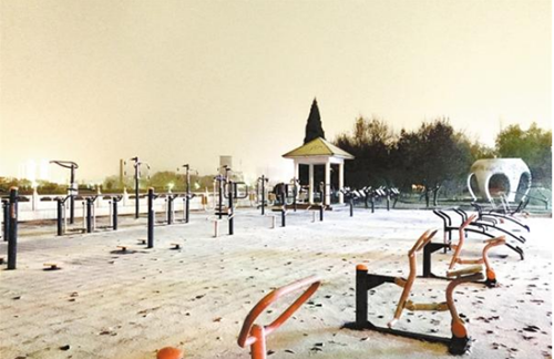 2018年冬天的第一場大雪,把周口市中心城區(qū)沙潁河風景區(qū)裝扮得清新雅致,別有一番風味?;ú?、綠植、雕塑、亭臺、環(huán)廊、步道乃至健身器材,在雪的映襯下,都顯得通透而有靈性,讓人欣喜非常。