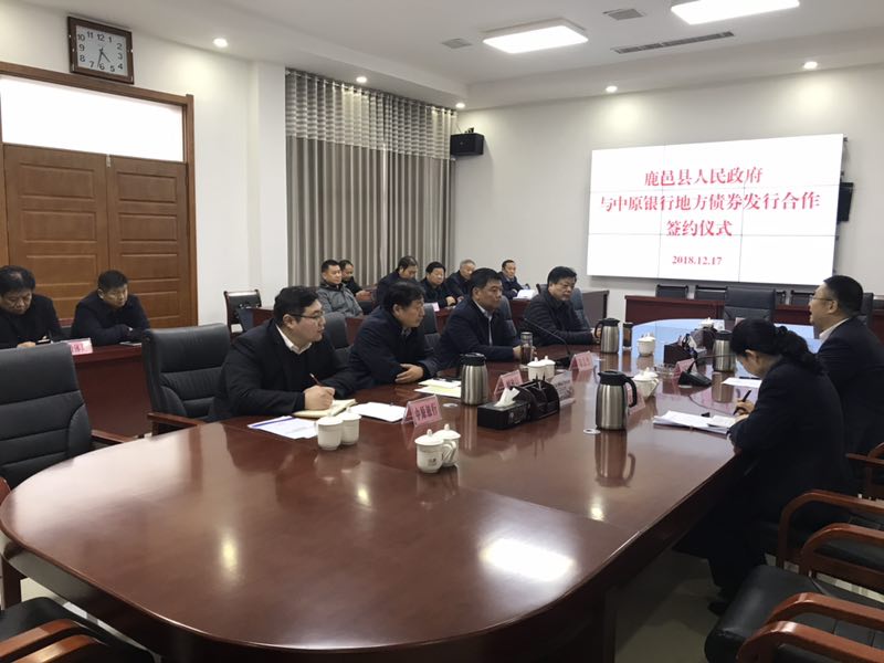 12月17日,鹿邑縣人民政府與中原銀行地方債券發(fā)行合作簽約儀式舉行。縣委常委、常務副縣長陸志杰,老子學院黨組副書記、交通局局長王初立,中原銀行周口分行黨委副書記、副行長周朝陽出席簽約儀式。縣財政局、教體局、住建局、林業(yè)局、發(fā)改委、老子文化產(chǎn)業(yè)園及投資公司等相關單位負責同志參加會議。