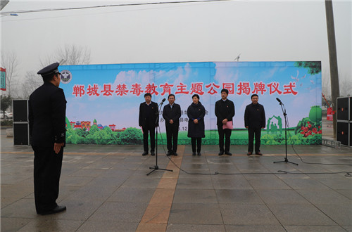 12月21日,鄲城縣舉行禁毒主題公園揭牌儀式,縣委書記羅文閣,縣委副書記、政法委書記、縣禁毒委主任崔衛(wèi)國,縣人大常委會(huì)主任李建軍,縣政協(xié)主席姜永來等出席儀式并為禁毒主題公園揭牌。