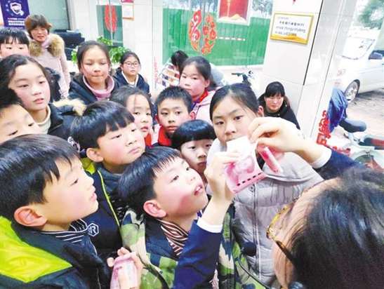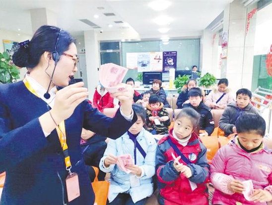 “歡迎各位小記者的到來,大家在過年的時候有沒有收到壓歲錢呢?”項(xiàng)城中銀富登村鎮(zhèn)銀行公司部經(jīng)理馮靖涵的一句話頓時讓小記者們從緊張的情緒中釋放出來?!拔业膲簹q錢,媽媽幫我存在銀行里了!”“我壓歲錢還放在存錢罐里,有時候還會拿出來數(shù)一數(shù)!”……小記者們的回答讓家長們都不由地笑起來。