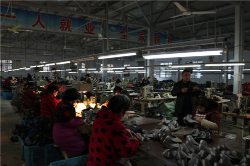 超琪鞋業(yè)是楊湖口鎮(zhèn)另一家以鞋面訂單加工為主、與上海東嘉鞋業(yè)合作的外貿出口企業(yè),年營業(yè)額達上千萬。在該公司“扶貧車間”里,有30多名像秦梅英一樣分別來自楊湖口鎮(zhèn)周邊的貧困和非貧困村的貧困戶,對200多名留守婦女和貧困群眾進行精準幫扶,是有名的“巧媳婦工程”示范加工點。該鎮(zhèn)鎮(zhèn)長劉新建說,超琪鞋業(yè)是全鎮(zhèn)產業(yè)精準扶貧、帶貧行動的一個縮影。楊湖口全鎮(zhèn)目前已發(fā)展有工業(yè)企業(yè)24家,養(yǎng)殖戶364戶,規(guī)模以上養(yǎng)殖企業(yè)17家,專業(yè)合作社116家。這些產業(yè)均以建檔立卡貧困村和貧困戶為幫扶對象,對貧困戶開展免費技能培訓,幫扶舉措有效解決貧困戶脫貧路上各種問題,為貧困戶就業(yè)增收提供支持,讓這些陷入貧困卻不能改變生活面貌的農村婦女有活干、有固定收入,能幸福生活。