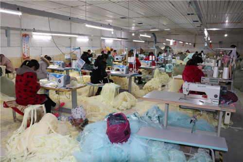 “我以前哪里都沒去過,別說干活掙錢了,公司給我們在家里備了縫紉機,現(xiàn)在可以把活拿到家里做,不出家門,就可以每月掙2000多元,并且常年都有活干?!焙屯趺啦灰粯拥氖牵毨魧O艷紅是因為丈夫去世,留下了她和一個智障兒子相依為命,僅僅依靠兩畝地及親戚鄰居的幫助生活,日子過的很是困苦。在金凱盛家紡“扶貧車間”的幫扶下,孫艷紅如今也順利地摘掉了脫貧帽。當天在車間里看到她時,她正準備拿著需要加工縫制的蚊帳,在家邊干活邊照看兒子。
