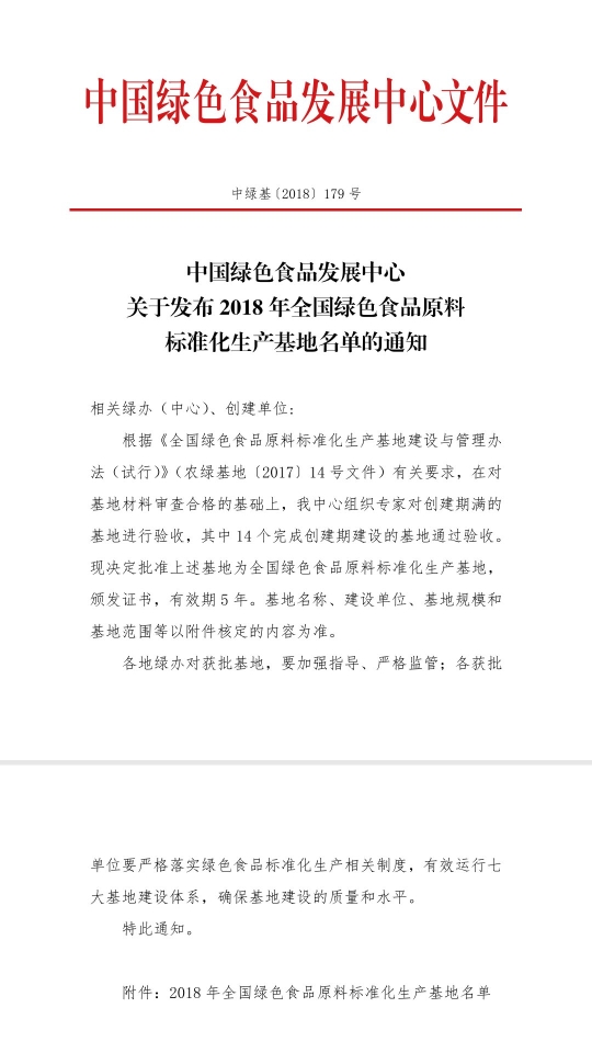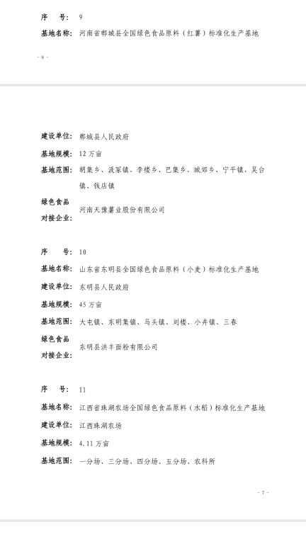 12月30日,中國(guó)綠色食品發(fā)展中心發(fā)布2018年全國(guó)綠色食品原料標(biāo)準(zhǔn)化生產(chǎn)基地名單,全國(guó)14個(gè)申報(bào)的基地獲批,鄲城縣人民政府在胡集鄉(xiāng)、汲冢鎮(zhèn)、李樓鄉(xiāng)、巴集鄉(xiāng)、城郊鄉(xiāng)、寧平鎮(zhèn)、吳臺(tái)鎮(zhèn)、錢店鎮(zhèn)等8個(gè)鄉(xiāng)鎮(zhèn)建設(shè),河南天豫薯業(yè)有限公司作為對(duì)接企業(yè)的12萬畝紅薯種植基地榜上有名。