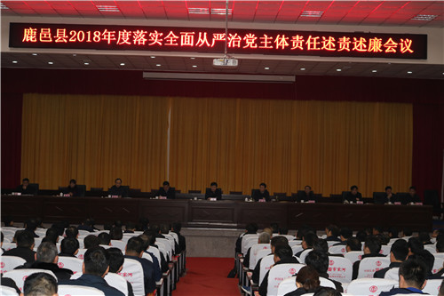1月4日上午,鹿邑縣2018年度落實全面從嚴(yán)治黨主體責(zé)任述責(zé)述廉會議在縣委黨校一樓報告廳召開??h委書記梁建松出席會議并講話??h委常委、紀(jì)委監(jiān)察委主任韓林主持會議。縣直各局委主要負(fù)責(zé)人、派駐紀(jì)檢組、巡查辦主要負(fù)責(zé)人以及各鄉(xiāng)鎮(zhèn)辦事處黨(工)委書記、紀(jì)檢書記參加會議。