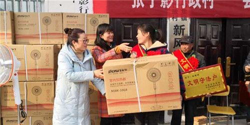 太康縣商務局為38戶受表彰的先進家庭頒發(fā)了獎牌和價值300元的電熱扇。