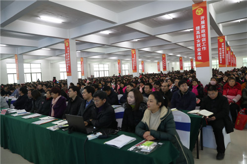 會上,王蘇、張俊美在講話中對太康縣“巾幗家政”扶貧工作給予了充分肯定,同時太康縣家政再出發(fā)工作寄語了厚望。太康縣縣長李錫勇代表縣委、縣政府向大會的召開表示祝賀,向長期以來關(guān)心支持太康發(fā)展的省、市領(lǐng)導(dǎo)表示感謝,并向全縣奮戰(zhàn)在脫貧攻堅的婦女同志致以誠摯的問候和美好的祝愿。李錫勇強(qiáng)調(diào),一要提升政治站位,統(tǒng)一思想認(rèn)識。開展家政扶貧培訓(xùn),是落實(shí)總書記教育扶貧思想的生動實(shí)踐。開展家政扶貧培訓(xùn),是太康縣助力脫貧攻堅的成功嘗試。開展家政扶貧培訓(xùn),是激發(fā)全縣廣大婦女內(nèi)生動力的主要抓手。二要認(rèn)真組織實(shí)施,確保培訓(xùn)質(zhì)量。對此,要摸清實(shí)情、科學(xué)謀劃、搭建平臺,確保形成合力。三要建立健全機(jī)制,打造家政品牌。太康縣委、縣政府把“巾幗家政”扶貧工程作為“三級書記”工程來抓,縣委書記、縣長帶頭遍訪貧困村,包鄉(xiāng)縣級領(lǐng)導(dǎo)干部遍訪所包鄉(xiāng)鎮(zhèn)的每個村民組,鄉(xiāng)鎮(zhèn)黨委書記、縣直分包鄉(xiāng)鎮(zhèn)負(fù)責(zé)人遍訪鄉(xiāng)鎮(zhèn)有婦女勞動力的貧困戶,村黨支部遍訪全村農(nóng)戶,宣講家政培訓(xùn)就業(yè)政策,協(xié)調(diào)解決研究存在的困難和問題,幫助建立“巾幗家政”扶貧工程長效機(jī)制。