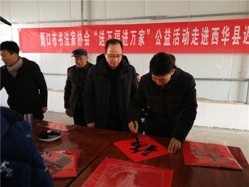 周口市財(cái)政局駐西華縣遲營(yíng)鄉(xiāng)徐橋村第一書(shū)記劉永健說(shuō),通過(guò)精準(zhǔn)扶貧,徐橋村今年實(shí)現(xiàn)貧困村摘帽、貧困戶脫貧。春節(jié)前夕,周口市書(shū)法家協(xié)會(huì)到徐橋村寫(xiě)春聯(lián)、送萬(wàn)福,把黨的關(guān)懷和溫暖,把書(shū)法家對(duì)群眾的美好祝福送進(jìn)千家萬(wàn)戶,這樣的活動(dòng)非常有意義。