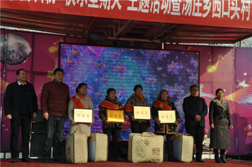 當(dāng)日,來(lái)自縣中醫(yī)院、縣衛(wèi)校附屬醫(yī)院的醫(yī)生在現(xiàn)場(chǎng)開展義診活動(dòng),縣文聯(lián)開展了春聯(lián)義寫活動(dòng),縣科協(xié)、移動(dòng)公司等單位開展了科技文化宣傳活動(dòng)。會(huì)議對(duì)湯莊鄉(xiāng)西口村評(píng)選出的“脫貧光榮戶、好婆婆、好媳婦、好鄉(xiāng)賢”等進(jìn)行表彰,縣委宣傳部副部長(zhǎng)李全力、縣科協(xié)主席陳玲、湯莊鄉(xiāng)鄉(xiāng)長(zhǎng)胡金旗等為獲獎(jiǎng)人員頒獎(jiǎng)。來(lái)自縣文化部門的文藝志愿者還為村民表演了精彩的文藝節(jié)目。