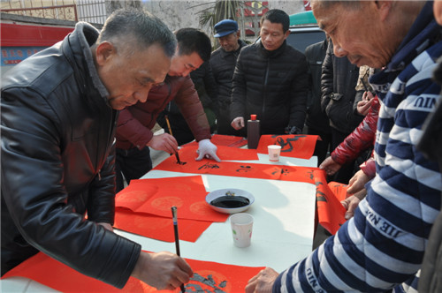 “我剛搬新家,要副大的對(duì)聯(lián)!”1月20日,在商水縣湯莊鄉(xiāng)西口村文化大院義寫春 聯(lián)現(xiàn)場(chǎng),劉麗擠在人群著高聲對(duì)埋頭寫字的書法老師說。當(dāng)天,商水縣科協(xié)、湯莊鄉(xiāng) 政府聯(lián)合主辦的“快樂星期天”暨“道德模范”表彰大會(huì)在這里舉行。