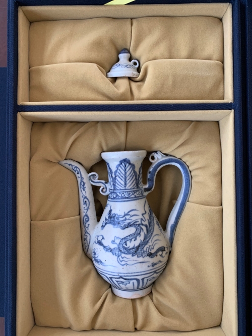 記者注意到,這件海撈元代青花瓷器,保存完整,造型美觀。瓷器中部繪有一條在云中翻飛的龍,口沿上部飾蕉葉紋,底部有蓮瓣紋,器物完整,造型精美。據(jù)了解,“海撈瓷”是收藏市場(chǎng)上對(duì)于從海底打撈出水的瓷器的一種稱謂,特指古代“海上絲綢之路”和“海上香瓷之路”開始以后,中國(guó)對(duì)外貿(mào)易途中,在南海海域觸礁沉船所遺留的各類外銷陶瓷。市博物館館長(zhǎng)周建山介紹,在歷史上,中國(guó)著名的瓷器就是經(jīng)由“海上絲綢之路”銷往各國(guó),這些“海撈”不但具有文物歷史價(jià)值,還反映中國(guó)人通過(guò)這條海上絲綢之路,走向世界各地的重要證據(jù)。