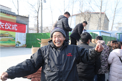 此次捐贈(zèng),共捐獻(xiàn)400多套棉襖。穿上嶄新的棉衣,87歲的李如意笑得合不攏嘴,他穿上新棉襖在廣場(chǎng)前轉(zhuǎn)了好幾圈,高興得像個(gè)等待過(guò)年的孩子。