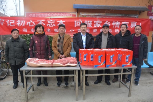 1月30日上午,商水縣平店鄉(xiāng)在曾莊村舉行在外創(chuàng)業(yè)人員曾小帥獻愛心、送溫暖捐贈儀式。