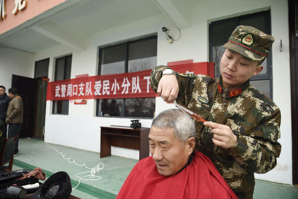 鄉(xiāng)村老年人們的身體狀況牽動(dòng)著支隊(duì)領(lǐng)導(dǎo)的心,他們派出支隊(duì)醫(yī)務(wù)人員走進(jìn)村落,在簡(jiǎn)易的地方辦起巡診。藥盒上的細(xì)心標(biāo)記,手把手的診療,情真意切囑咐,都是官兵們真切的表達(dá)。支隊(duì)理發(fā)員帶著理發(fā)工具和一顆赤誠(chéng)的心來(lái)到了村里,為老人們邊理發(fā)邊嘮家常,老人臉上樂(lè)開(kāi)了花兒,笑著說(shuō)“我家孫子和你大小差不多哩!”村里的孩子們也很喜歡這群穿著軍裝的叔叔們,不僅因?yàn)樗麄兠看蝸?lái)都會(huì)送上精美學(xué)習(xí)用品,先進(jìn)的多媒體設(shè)備,更因?yàn)樗麄兩砩宪娙颂赜械呢?zé)任與擔(dān)當(dāng)。