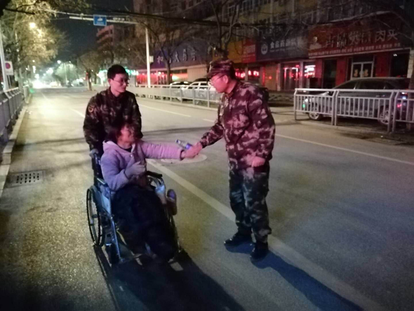 人民軍隊(duì)愛(ài)人民,無(wú)論山高水遠(yuǎn),歲暮天寒。2月18日凌晨1時(shí)許,武警周口支隊(duì)政委韓偉鋒查勤歸來(lái),在支隊(duì)大門(mén)口恰巧遇到一位大姐獨(dú)自一人搖著輪椅艱難前行。當(dāng)晚氣象局預(yù)報(bào)有降雪,實(shí)時(shí)氣溫也只有-4℃。夜深人靜,天凝地閉,韓政委有些擔(dān)憂(yōu)這位大姐的安全,連忙上前詢(xún)問(wèn)情況,并步行推著輪椅將大姐送至目的地。其實(shí),這件事只是武警周口支隊(duì)愛(ài)民助民工作的一個(gè)縮影。