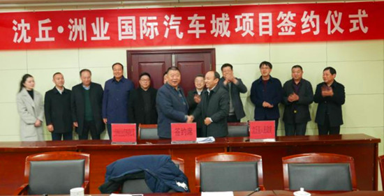 2月26日,沈丘洲業(yè)國(guó)際汽車城項(xiàng)目簽約儀式在錦華大酒店舉行。沈丘縣委書(shū)記皇甫立新,縣長(zhǎng)劉國(guó)慶,縣委常委、常務(wù)副縣長(zhǎng)郝四春,副縣長(zhǎng)呂孝坤,副處級(jí)干部張曉,上海洲業(yè)企業(yè)管理有限公司董事長(zhǎng)李海波,總裁李榮輝等出席簽約儀式,縣直相關(guān)職能部門(mén)負(fù)責(zé)人參加了簽約儀式。