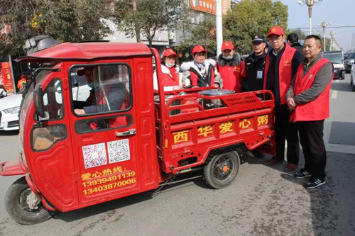 西華縣愛心粥屋組織個(gè)私黨員志愿者在女媧廣場(chǎng)開展“愛心茶水送滿城”活動(dòng),擺攤設(shè)點(diǎn),出動(dòng)流動(dòng)車,免費(fèi)送愛心棗茶。