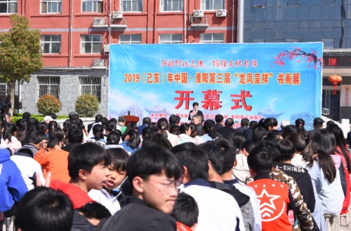 3月31日是農(nóng)歷2月25日,民間認(rèn)為是伏羲誕辰。為慶祝人文始祖太昊伏羲華誕,進(jìn)一步繁榮書畫優(yōu)秀傳統(tǒng)文化,2019年中國(guó)?淮陽第三屆“龍鳳呈祥”書畫展在淮陽縣實(shí)驗(yàn)高中舉行。中國(guó)先秦史學(xué)會(huì)龍文化研究會(huì)會(huì)長(zhǎng)宮長(zhǎng)為和省內(nèi)外的百余名知名書畫家出席活動(dòng)。