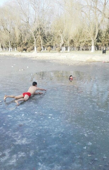去年1月1日,甘肅省金昌市龍泉公園內(nèi)一名6歲男孩墜入湖中冰窟。在附近游玩的王保華見(jiàn)狀,毫不猶豫地脫掉厚重的冬衣,只剩一條紅褲頭,躬身走上了冰面。接近男孩時(shí),他匍匐在冰面上,在同伴的幫助下,奮力把編好的藤條遞向在水中掙扎的男孩 。在其他愛(ài)心人士的共同幫助下,男孩最終獲救,而王保華與同伴悄悄離開(kāi)了。事后,中央電視臺(tái)等媒體紛紛報(bào)道了此事,一時(shí)間,“紅褲頭”救人的事跡,在那個(gè)寒冷的冬天引起了強(qiáng)烈反響。