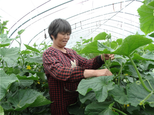 4月24日,沈丘縣周營鎮(zhèn)趙莊村生態(tài)蔬菜大棚基地里,綠油油的吊蔓黃瓜長勢喜人,少量已采摘上市。忙碌著的菜農(nóng)王翠霞告訴記者:“俺今年種了20畝地的大棚黃瓜,從種子肥料,到用水用藥,都有講究,要按標準化生產(chǎn),這樣種出來的黃瓜品質(zhì)好,客商搶著要。一畝地大棚瓜果蔬菜的年收入超過1.5萬元?!?/p>