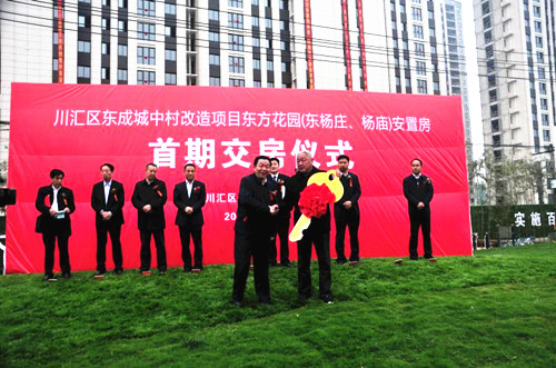 據(jù)介紹,東成城中村改造項(xiàng)目是2014年豫港經(jīng)貿(mào)洽談會重點(diǎn)簽約的5個項(xiàng)目之一,是省、市重點(diǎn)棚戶區(qū)改造項(xiàng)目,涉及川匯區(qū)、經(jīng)濟(jì)技術(shù)開發(fā)區(qū)2個辦事處3個行政村,總占地4300多畝,其中川匯區(qū)七一路辦事處東楊莊行政村1700多畝。當(dāng)天交付的東方花園安置房是東楊莊、楊廟安置區(qū)項(xiàng)目,該項(xiàng)目占地102.7畝,總建筑面積23.6萬平方米,總投資6.52億元,建設(shè)安置房2010套,同時配建幼兒園1所、地下地上車位1600個、社區(qū)及商業(yè)服務(wù)用房1.8萬平方米。該項(xiàng)目于2016年10月26日正式開工建設(shè),經(jīng)過30個月的緊張施工,其中1棟樓208套房達(dá)到交付條件正式向回遷群眾交付。預(yù)計到7月1日,將再交付6棟樓1112套房,明年“五一”,整個安置區(qū)將全部交工。
