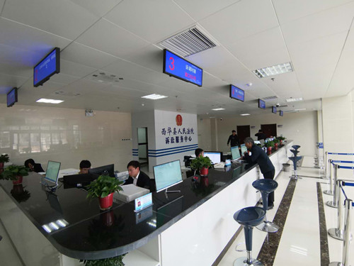 在西華縣人民法院訴訟服務(wù)中心,當(dāng)事人及社會(huì)公眾可通過訴訟服務(wù)智能系統(tǒng)的自助終端進(jìn)行網(wǎng)上立案、案件查詢、訴訟引導(dǎo)、閱卷申請(qǐng)、聯(lián)系法官和查看法庭位置、開庭公告等信息,并可打印文書樣式。