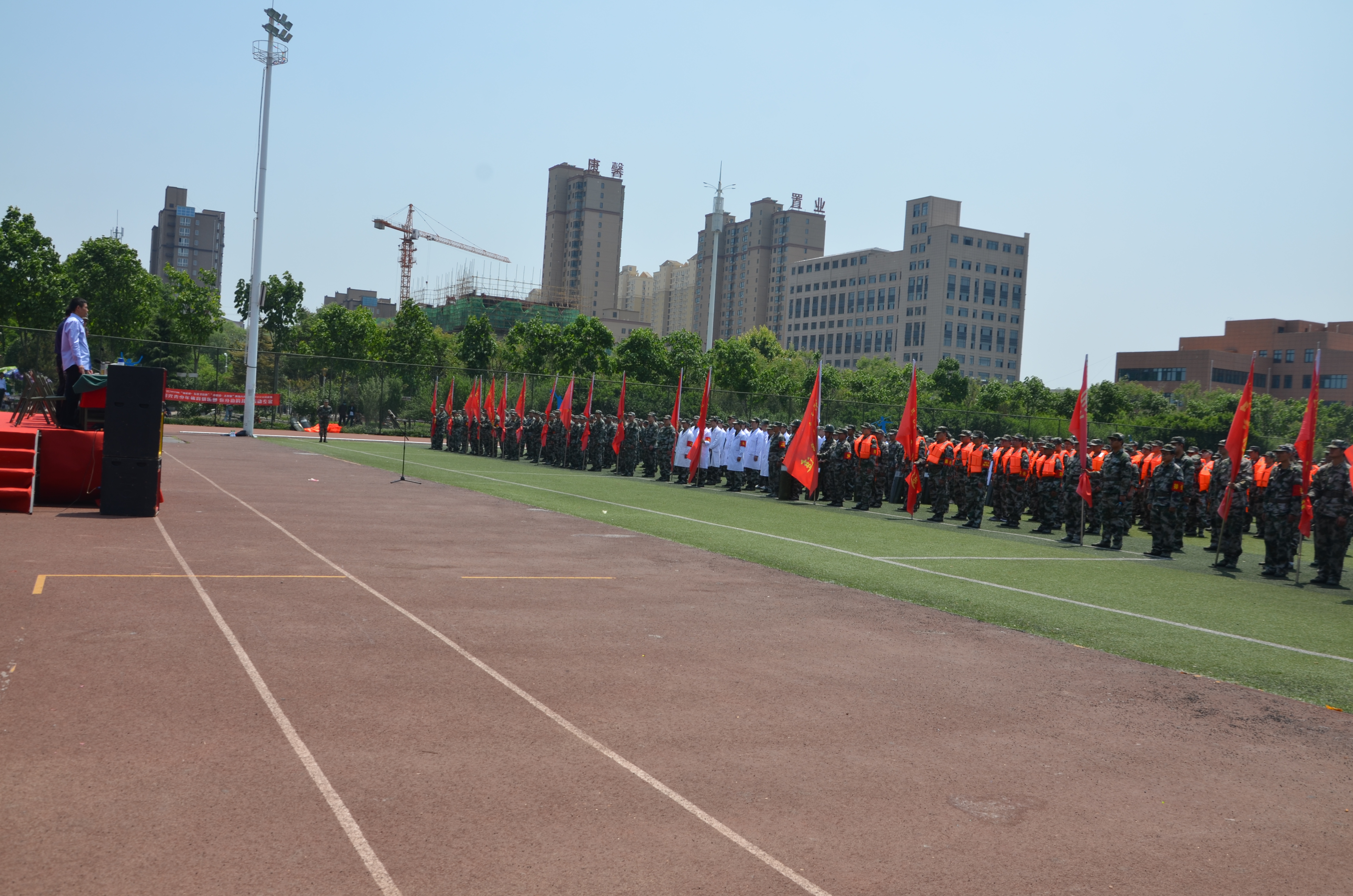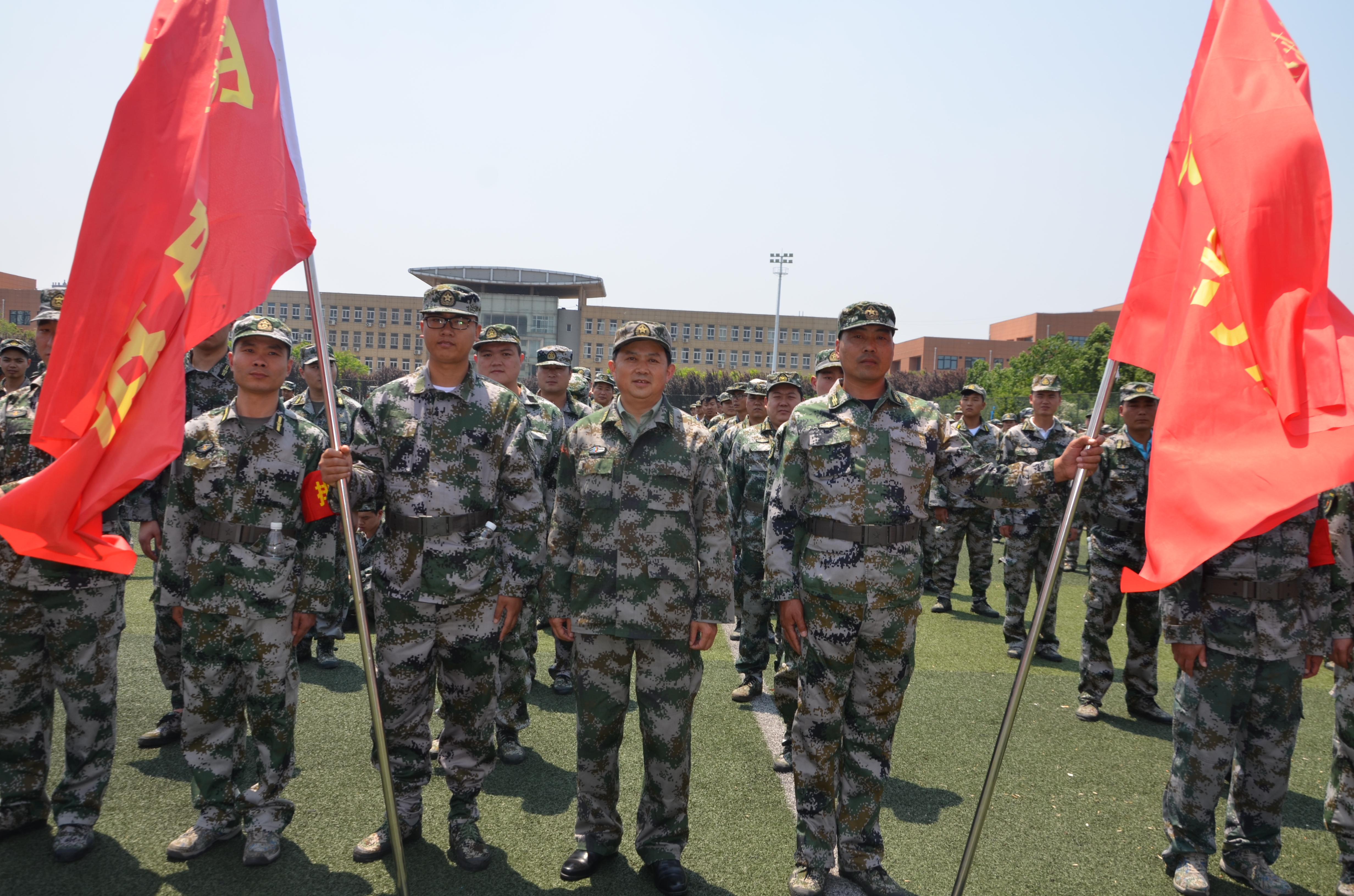5月10日上午,沈丘縣體育場上紅旗招展、隊列整齊,民兵同志全副武裝、精神抖擻。綜合應(yīng)急分隊、防汛抗洪分隊、應(yīng)急防爆分隊、醫(yī)療救護分隊和22個鄉(xiāng)鎮(zhèn)民兵應(yīng)急排近千名基干民兵參加了沈丘縣2019年基干民兵集中點驗暨開訓(xùn)動員大會。
