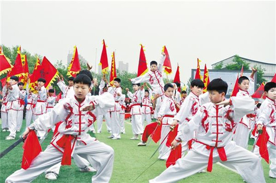 5月18日上午,為期一周的商水縣2019年“全民健身月”系列活動(dòng)啟動(dòng)。據(jù)悉,系列活動(dòng)期間,該縣將舉辦“縣長(zhǎng)杯”中學(xué)生足球賽、“萬(wàn)步有約”職業(yè)人群健走、中小學(xué)生陽(yáng)光體育運(yùn)動(dòng)會(huì)、周口市第四屆鞭陀交流賽等活動(dòng),全縣共有66支代表隊(duì)5000余人參與其中。圖為啟動(dòng)儀式上的節(jié)目展演。記者 付永奇 攝