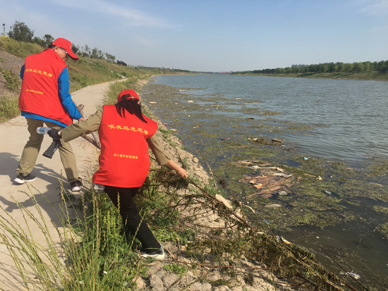 雖然當(dāng)天氣溫創(chuàng)下我市入夏以來(lái)的新高,但志愿者們?nèi)詼?zhǔn)時(shí)來(lái)到集合地點(diǎn)開(kāi)展巡訪活動(dòng)?;顒?dòng)開(kāi)始后,志愿者們來(lái)到了沙潁河風(fēng)景區(qū)的鐵路風(fēng)情廣場(chǎng)東側(cè),發(fā)現(xiàn)這里的一處電力井蓋破損嚴(yán)重。沒(méi)過(guò)多久,志愿者們發(fā)現(xiàn)附近河段中有許多水草和漂浮物。由于河邊濕滑,又沒(méi)有清理工具,志愿者們?cè)诖_保自身安全的前提下,將部分漂浮物撈到岸邊并放進(jìn)了垃圾箱中。由于水草和漂浮物太多,志愿者們的努力顯得杯水車(chē)薪。