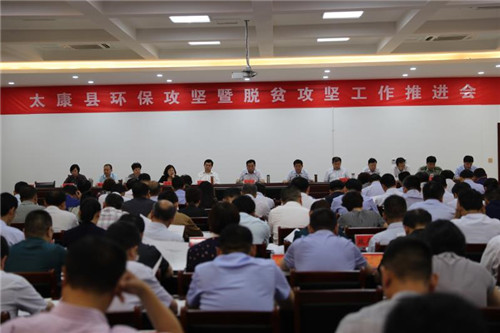 太康縣日前在脫貧攻堅(jiān)指揮部視頻會議室召開環(huán)保攻堅(jiān)暨脫貧攻堅(jiān)工作推進(jìn)會。王國璽、李錫勇等縣四個(gè)班子領(lǐng)導(dǎo)及縣副處級以上干部、各鄉(xiāng)鎮(zhèn)黨委書記、縣直單位主要負(fù)責(zé)人、縣委各部委辦常務(wù)副職參加會議。