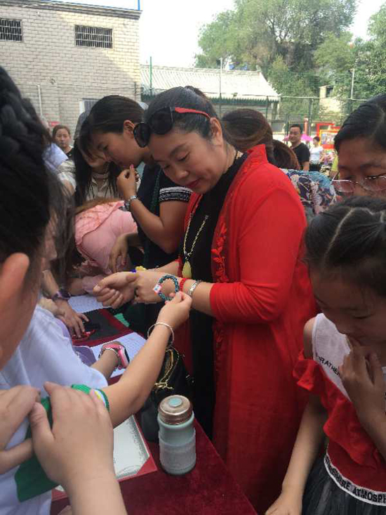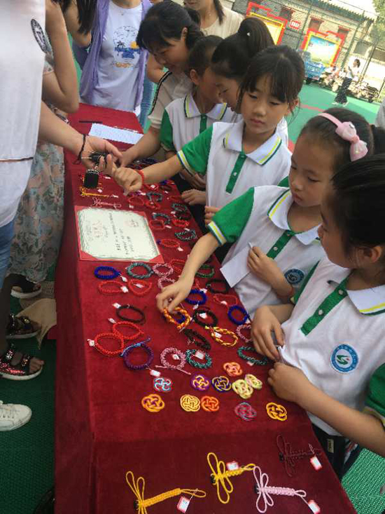 5月25日上午,沈丘縣中國(guó)結(jié)第七代傳承人李海花走進(jìn)槐店鎮(zhèn)回民小學(xué),和學(xué)?!爸袊?guó)結(jié)”手工編織興趣班的20名學(xué)生舉行“愛心義賣,情暖校園”主題活動(dòng)。不到半小時(shí),100多件作品被搶購(gòu)一空還預(yù)定了很多。據(jù)悉,這次義賣共得到1200余元,將全部捐給“槐店鎮(zhèn)中心學(xué)校教育基金”,用來(lái)資助該鎮(zhèn)經(jīng)濟(jì)困難師生、獎(jiǎng)勵(lì)優(yōu)秀教師和學(xué)生、資助教育教研等重大活動(dòng)項(xiàng)目。