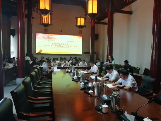 6月25日下午,鹿邑縣委辦公室黨總支開展“不忘初心、牢記使命”主題黨日活動??h委書記梁建松,縣委常委、辦公室主任侯自峰以普通黨員身份參加活動,并帶頭繳納了黨費??h委辦公室常務副主任、黨總支書記胥茂森主持主題黨日活動??h委辦公室全體黨員參加活動。
