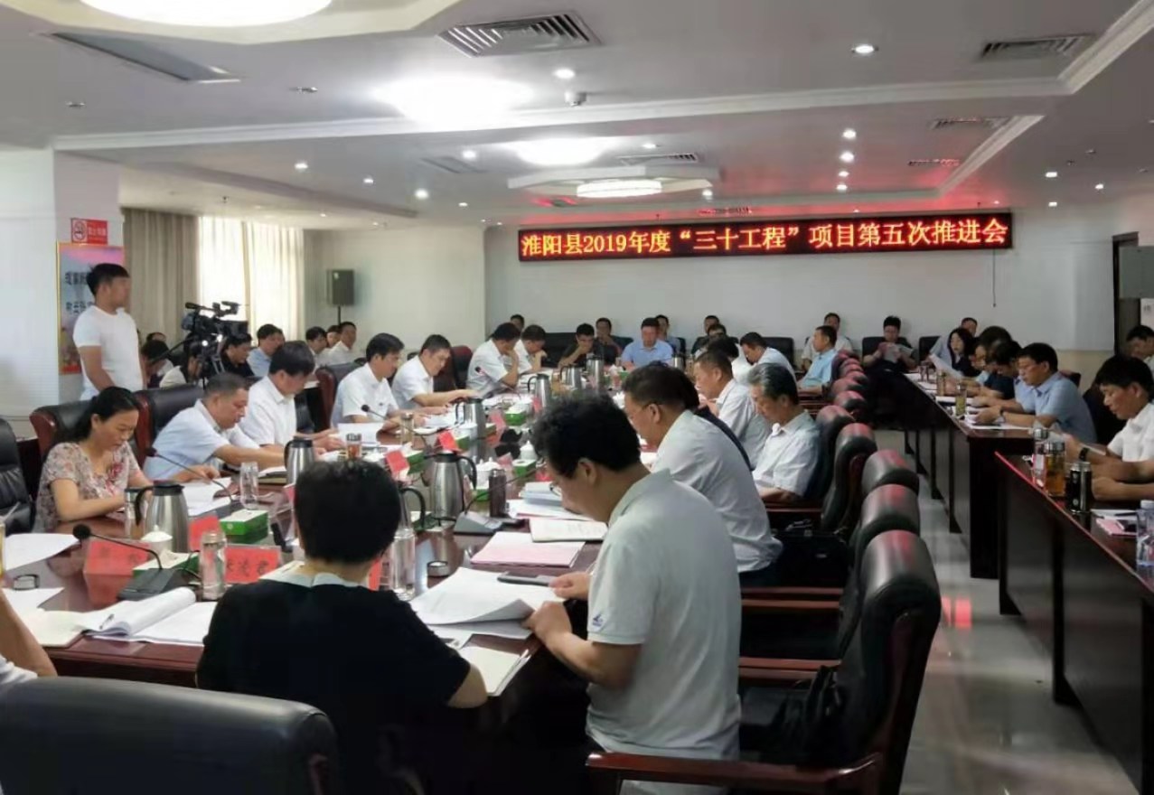 7月1日上午,淮陽縣召開2019年“三十工程”項目第五次推進會議。馬明超、王毅、蘇中林、馬自成、謝留定、董鴻、劉淑杰、李祥生、劉大明、劉元濤、鄒松等四個班子領(lǐng)導和項目指揮部副指揮長及相關(guān)單位負責人參加會議。會議回顧總結(jié)上半年的項目建設工作,安排部署下一階段的重點項目建設工作。