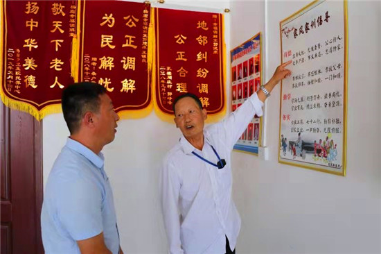 老人說,他是2018年初加入“幸福調(diào)解室”的,“當(dāng)時,我剛從外地回來,路過楊廟看到有人臨街房前懸掛調(diào)解室招牌,就報名加入了調(diào)解室隊伍?!?/p>