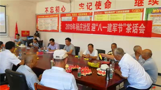 7月28日,根據(jù)慰問預(yù)案,9個社區(qū)分別召開了退役軍人茶話會,退役軍人參加人數(shù)達(dá)276人,回憶起當(dāng)年軍旅生涯中的點(diǎn)點(diǎn)滴滴,暢談現(xiàn)在幸福美好生活,共話創(chuàng)衛(wèi)、棚改等關(guān)乎群眾生活的惠民工程,暢想全縣交通格局大提升的美好未來,氣氛熱烈濃厚。廣大退役軍人表示,“退伍不褪色”,秉承軍隊(duì)的光榮傳統(tǒng),在不同的崗位上繼續(xù)發(fā)光發(fā)熱,不遺余力的工作回報這個美好的新時代,廣大年輕干部表示要以他們?yōu)榘駱?,培養(yǎng)自己刻苦耐勞、甘于奉獻(xiàn)的優(yōu)秀品德,更好的服務(wù)于工作、服務(wù)于群眾。另外,該辦事處還對443名退役軍人進(jìn)行短信慰問。