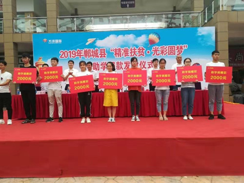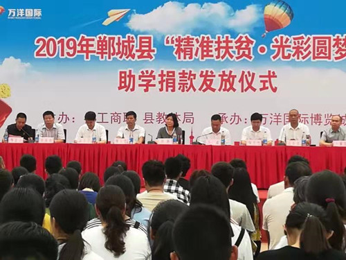 本次“精準(zhǔn)扶貧·光彩圓夢”由縣萬洋集團(tuán)慷慨解囊、傾情相助,共捐資20萬元,對(duì)100名品學(xué)兼優(yōu)的貧困學(xué)子給予資助,為鄲城的教育事業(yè)增光添彩。
