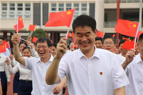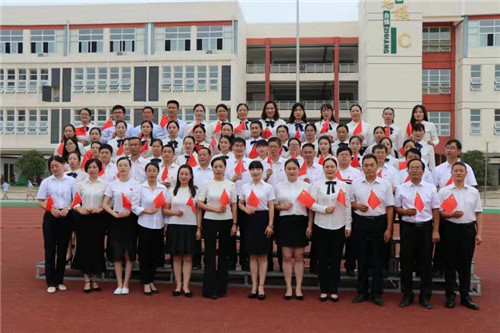 伴隨著琵琶悠揚的旋律,在場人員揮舞手臂,舞動國旗,共同唱響《我和我的祖國》。激情澎湃的歌聲響徹第二實驗小學每一個角落,訴說著鄲城教育人對祖國的衷心熱愛和真誠歌頌。