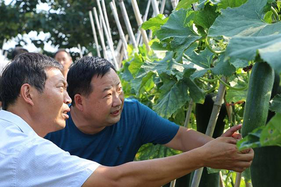 炎炎夏日,大棚下的侯俊昌汗水再次濕透,他撫摸著一串串紫紅色的葡萄說,這都是改變貧窮的“紫珍珠”啊,只要我們班子上下齊心協(xié)力,小小的葡萄也能幫我們“拔掉窮根?!辈粌H僅是葡萄產(chǎn)業(yè),村里的婦聯(lián)主任徐桂蘭也主動(dòng)帶頭創(chuàng)業(yè),承包了80畝的田地,種起了優(yōu)質(zhì)冬瓜,畝產(chǎn)上萬斤,通過駐村幫扶,提供產(chǎn)銷信息,遠(yuǎn)銷到省內(nèi)外多地。秋季種小麥、夏季種冬瓜的模式,畝產(chǎn)收益均在4000元以上。她平時(shí)鼓勵(lì)村里貧困戶到冬瓜地打工,每年帶動(dòng)近20戶貧困戶,每戶增加收益近5000元?!焙羁〔嬖V我們,“產(chǎn)業(yè)扶貧,造血扶貧在位口村已經(jīng)深深扎根,同時(shí)也吸引了很多在外務(wù)工的有識(shí)青年返鄉(xiāng)創(chuàng)業(yè),有的做起了尾毛生意、有的做起了毛刷生意?,F(xiàn)在全村興起人人講創(chuàng)業(yè),戶戶拼經(jīng)濟(jì)的良好氛圍。”