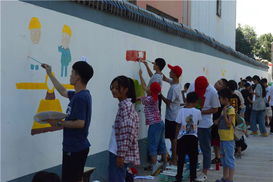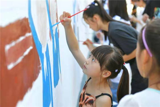 活動現(xiàn)場,參與者們從設(shè)計構(gòu)圖到勾勒輪廓,從調(diào)制顏料到搭配色彩,每一個步驟、每一道工序都一絲不茍。大家圍繞“禮贊新中國 歌頌新時代”這一主題,在近百米長的墻面上認(rèn)真作畫,只見現(xiàn)場參與者工筆勾線、揮毫上色,經(jīng)過一個多小時的創(chuàng)作,“社會主義核心價值觀”“中國夢”“市民文明公約”等愛國元素躍然墻上……內(nèi)容豐富、形式多樣,一幅幅作品色彩明快、質(zhì)樸純?nèi)?,充分展示了書畫志愿者們對祖國和家鄉(xiāng)的熱愛,對藝術(shù)的追求和對美好生活的向往,宣傳了中國傳統(tǒng)書畫藝術(shù),提升了新時代文化自信,為該縣美術(shù)愛好者帶來了一場藝術(shù)盛宴。