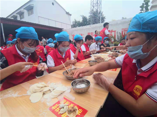 當(dāng)天上午,一場(chǎng)由周口市紀(jì)委監(jiān)委駐杜崗村工作隊(duì)聯(lián)合紅花鎮(zhèn)、杜崗村、周口北斗達(dá)教育集團(tuán)共同舉辦的孝老餃子宴,在該村文化廣場(chǎng)別開生面地拉來序幕?!按謇锼?0歲(含60歲)以上的老人今天中午都到文化廣場(chǎng)來吃餃子啊,市紀(jì)委和愛心企業(yè)來為我們包餃子啦……”8時(shí)剛過,杜崗村黨支部書記李長(zhǎng)青就通過村里的大廣播每隔半小時(shí)播報(bào)一次,生怕哪位老人忘了這檔子事兒。