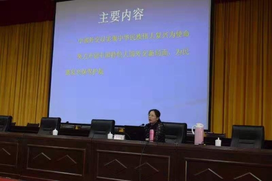 姚巧華從“新時代中國外交堅持以實現(xiàn)中華民族偉大復興為使命”“努力開創(chuàng)中國特色大國外交新局面,為民族復興保駕護航”兩個大方面,深刻闡述了“習近平新時代中國特色社會主義外交思想”。所講觀點鮮明,重點突出,講法靈活,圖文并茂,事例貼切,語言精準,理論性強,具有很強的指導性。