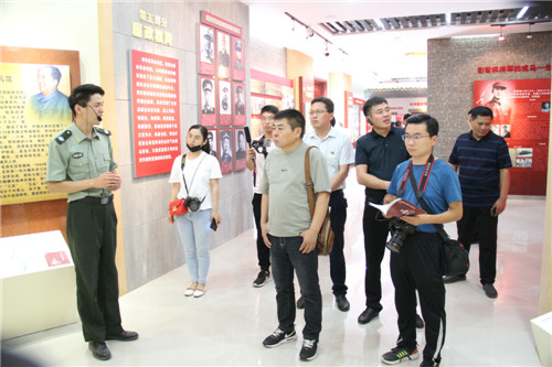 看展覽、聽講解、看影像,采訪團記者仔細瀏覽紀念館內(nèi)陳列的一張張珍貴照片、一份份批示文件、一件件戰(zhàn)斗裝備,不時地記錄、拍照。