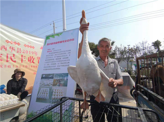 上午10時許,記者在現(xiàn)場看到,這邊廣場舞大賽舉辦正酣,那邊農(nóng)產(chǎn)品展臺人頭攢動。“咦,家里養(yǎng)的大鵝也來‘參會’了,你看多有意思?!痹陴B(yǎng)殖區(qū)展臺前,前去參觀的一群婦女開心地說。村民趙大姐說,豐收節(jié)真是農(nóng)民自己的節(jié)日,誰能想到家里的大鵝也能成為“稀罕物”,擺到展臺前了?旁邊的養(yǎng)殖合作社負責人接過話茬:“你可別小看這大鵝,一年給俺帶來幾百萬元收入呢?!?/p>